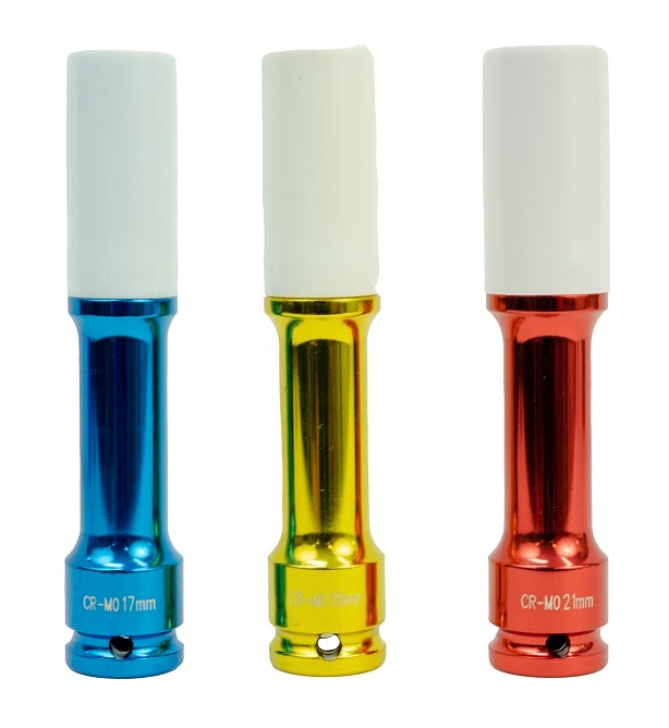 - Socket Color(s) | Blue (17mm), Yellow (19mm), Red (21mm)