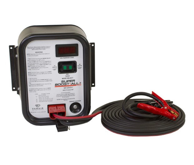Super Boost•All with Protect•All Safety Technology is designed to be mounted on your service vehicle with 2 or 4 auxiliary jump starting batteries to start 12 or 24 volt vehicles. The auxiliary batteries are charged from the service vehicle’s electrical system through the internally mounted battery separator.