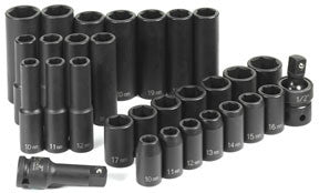 This Grey Pneumatic has 6-Point sizes, 10mm to 24mm, 30 Piece Set, Molded Storage Case, Weight: 14lb