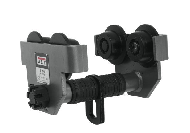 JET PT Series heavy duty manual trolleys are available in capacities from 1/2 ton to 10 Tons. Built with heavy gauge steel for increased durability, the large steel wheels and thicker bearings provide smooth movement on a variety of beams. The built in bumper guards increase user safety and extend the life of the trolley. Each JET Manual Trolley conforms to OSHA regulations, and ANSI / ASME standards