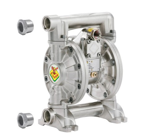 Diaphragm pump in aluminum series AAB-34 with membranes in NBR, balls and seats in Hytrel. With 1/2" adaptors in aluminum.