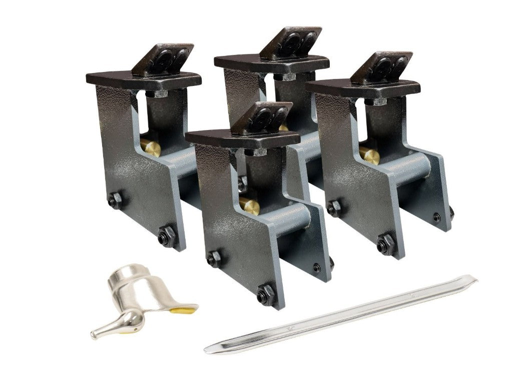 This ATV wheel clamp kit includes a set of four clamp adapters for use on Ranger NextGen tire changers, as well as an ATV mount/demount head. Ranger’s wheel clamps are ideal for anyone looking to perform service on most ATV tires; they'll also service motorcycle and ATV wheels. The elevated clamp kit increases external wheel clamping capacity and features a robust steel construction for heavy-duty use. An anodized finish provides an additional later of protection, while the quick-release, spring-loaded locking pin keeps clamps secured safely to table.