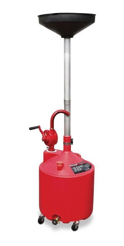 The lightweight 18-gallon RD-18G features a convenient hand pump for even faster oil draining and a stable body to ensure proper balance, whether the unit is collecting oil or effortlessly gliding across the floor on its ball bearing casters. The drain is constructed out of high-quality, translucent polyethylene for strength and durability, which also enables operators to check the oil level at all times with ease. The entire oil drain is resistant to rusting, denting, fluid damage and chemical erosion.