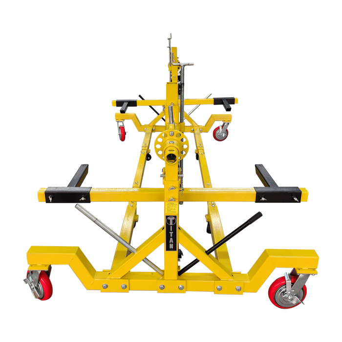 The all new dual connecting rods supports and strengthens your load capabilities. The two hydraulic cylinders effortlessly raise the lifting cradles to the desired working height which makes getting to those hard to reach places a breeze. The dual hydraulic cylinders effortlessly raise the lifting cradles to the desired working height which makes getting to those hard to reach places a breeze. The ROT-4500-G2 can handle just about any chassis configuration you throw at it when utilizing our optional mounting adapters.