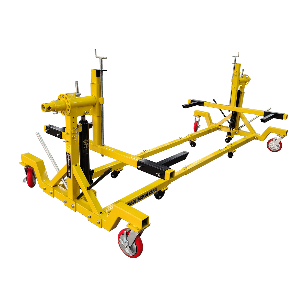 For safety, we have included (4) 8" locking casters that are designed to roll effortlessly without marring your shop floor. Another accessory item that we offer for the ROT-4500-G2 is the Rotisserie Leg kit which is used to help stabilize the load when rotating the chassis or body 360 degrees. The durable powder coated finish will withstand the toughest abuse. If you are looking to start a restoration project or already run a full-time body shop, ROT-4500-G2 is an economical solution that will keep you working smarter, not harder.