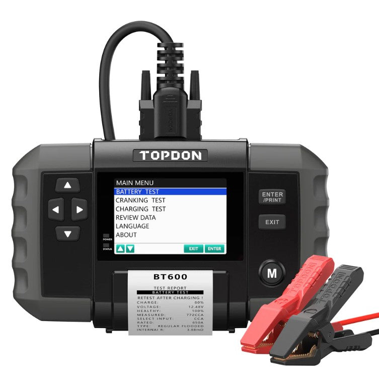 TopDon BT600 12V Battery & 12V/24V System Tester w/Built-in Printer