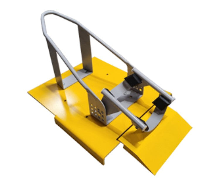 The iDEAL M-Chock & Base Plate Kit (SC-2K-UTV-MCBPK) is an exclusive designed optional accessory Kit for the iDEAL SC-2K-UTV-X Lift, providing the ability for safe storage or service for most motorcycles up to 1,000 lbs. utilizing the SC-2K-UTV-X Lift’s ‘multi-adjustable’ platform design with multi-directional ‘front & side’ motorcycle loading. The M-Chock’s adjustable self-locking pivot cradle design allows for easy one-person loading & unloading, while the Base Plate provides two mounting configurations for ‘front or side’ platform loading options at multiple platform locations. The M-Chock & Base Plate ‘Storage & Service’ Kit comes standard with durable powder-coat paint finish, heavy-duty steel construction while including two Tie-Down Ring Eyelets assisting in securing motorcycle to lift and platforms. If space allows and not exceeding platforms capacity, add another M-Chock & Base Plate Kit to the SC-2K-UTV-X Lift for double the motorcycle storage & service capacities.